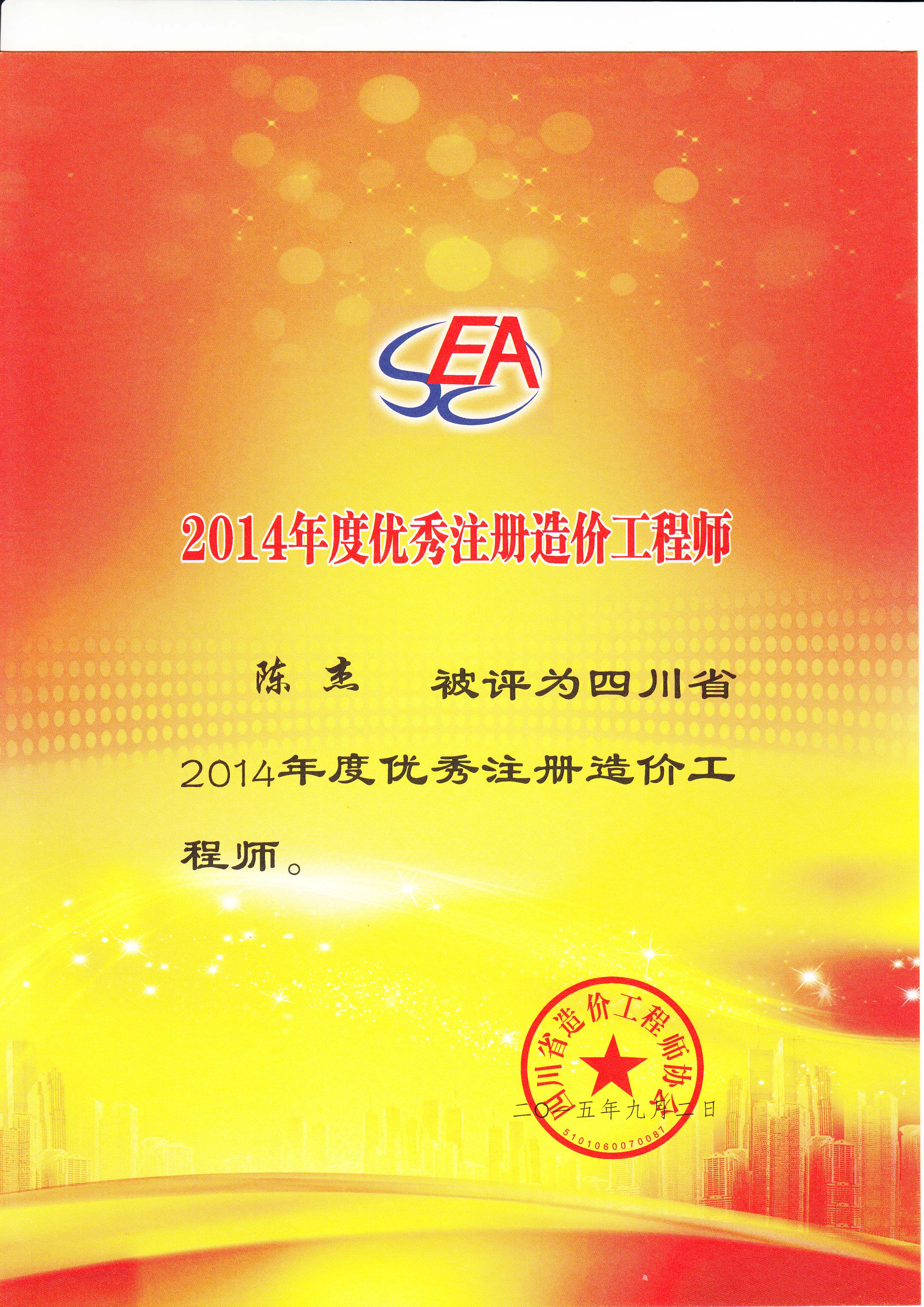 陈杰 2014年度优秀个人
