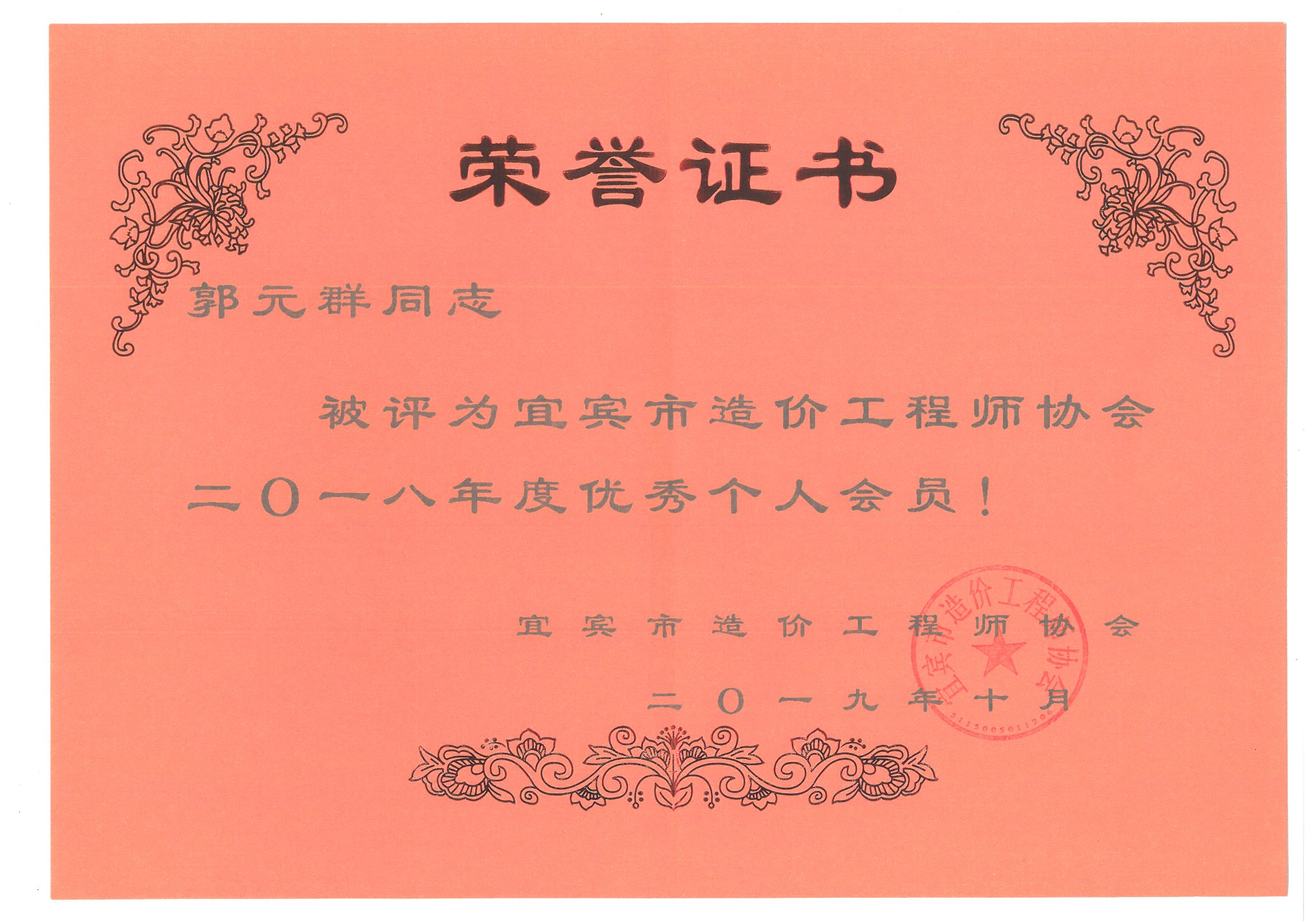 宜宾市造价工程师协会2018年度优秀个人会员(郭元群)