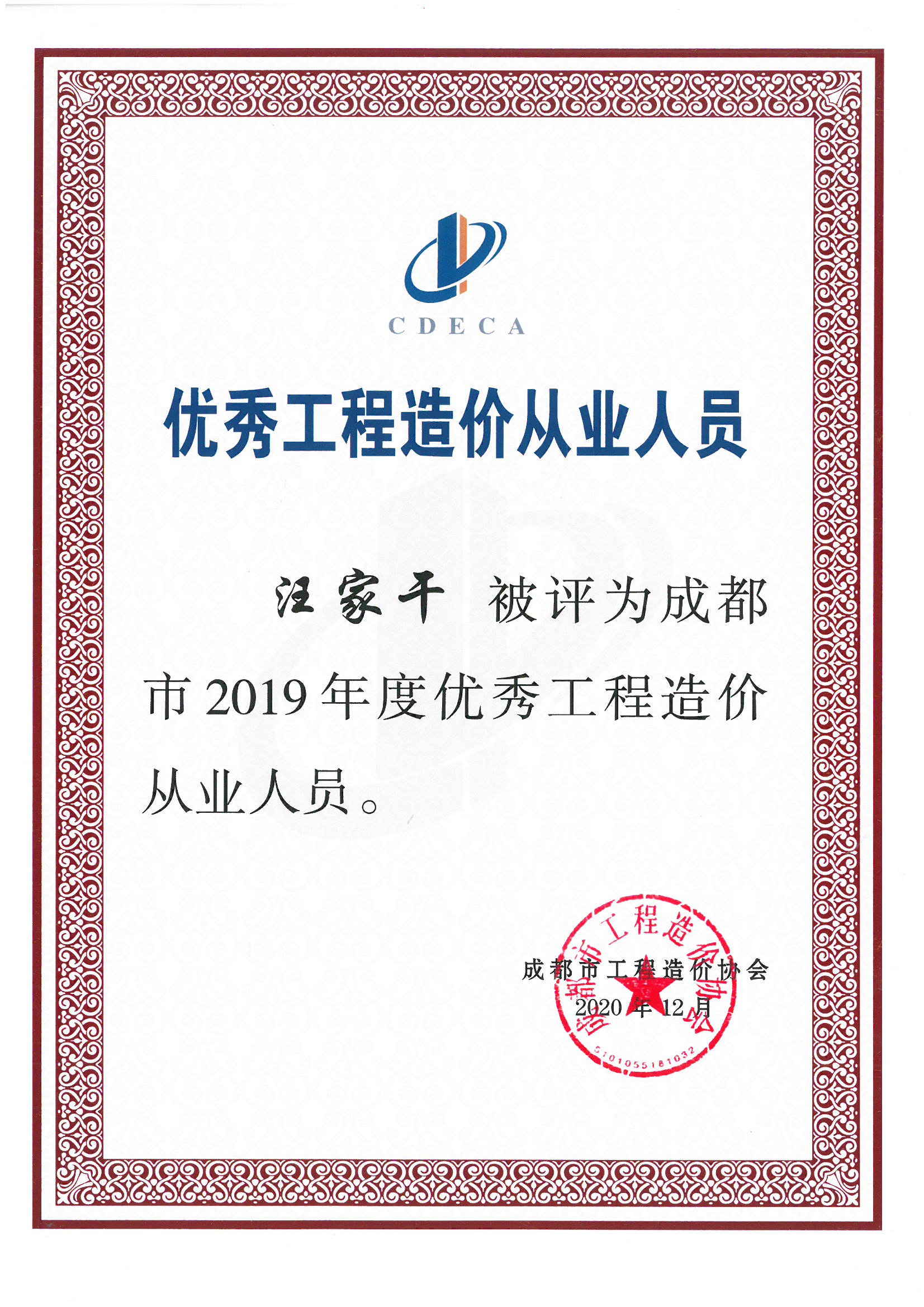 成都市2019年度优秀工程造价从业人员(汪家干)