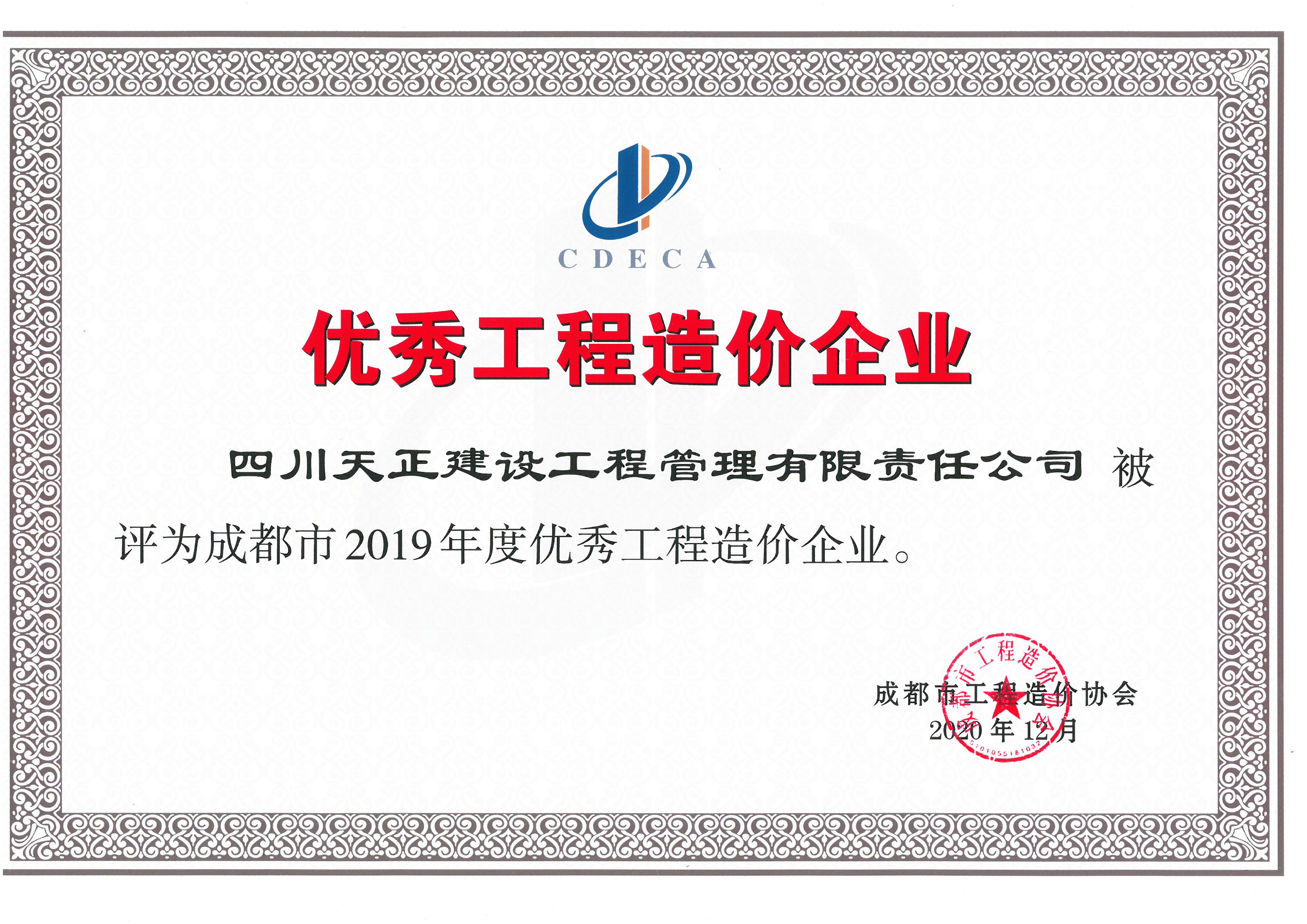 成都市2019年度优秀工程造价企业