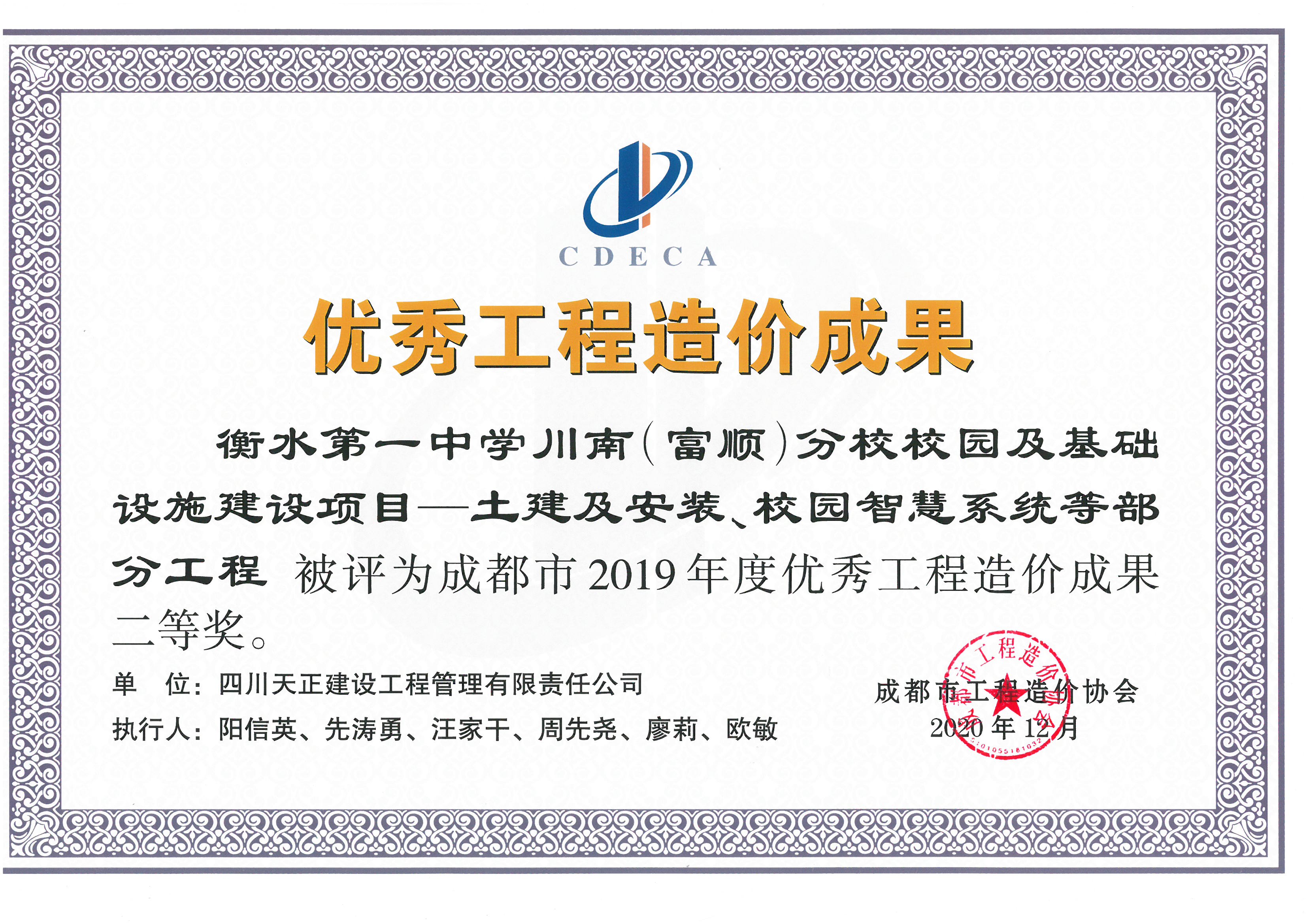 成都市2019年度优秀工程造价成果