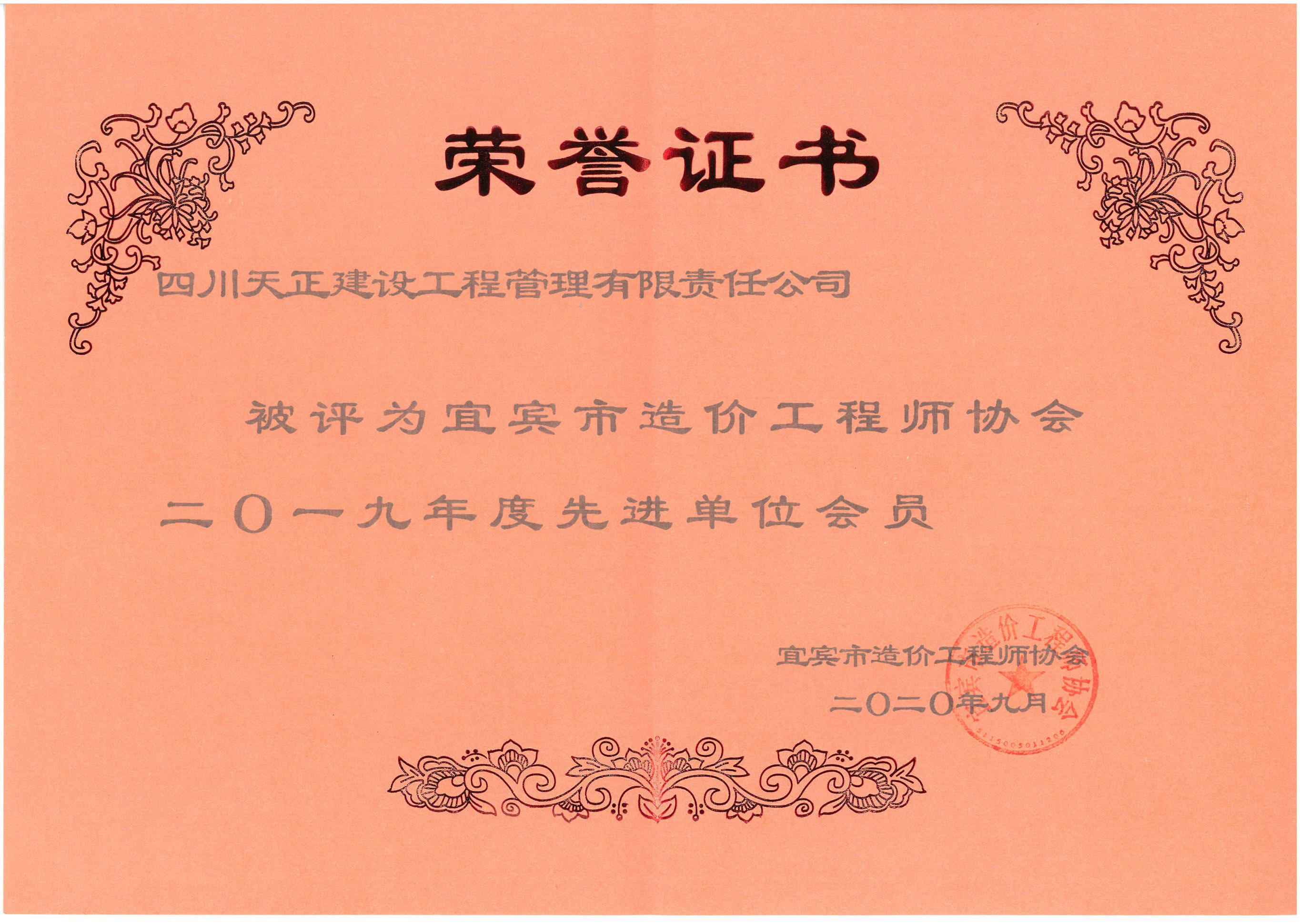 宜宾市2019年度先进单位会员